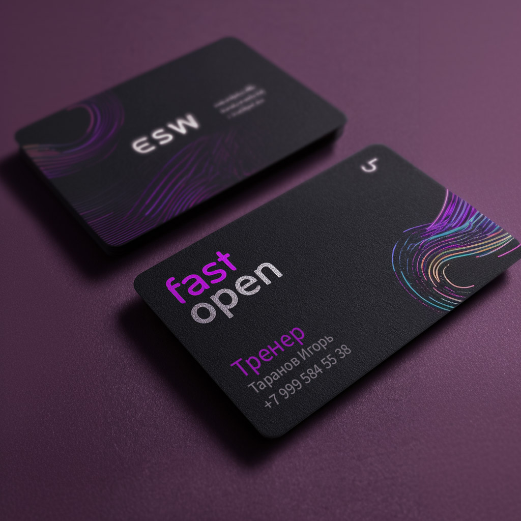Ответ: Soft Touch — это особый вид УФ-лакировки, который создает на поверхности бумаги или картона матовое, бархатистое покрытие. Главное его отличие — уникальное тактильное ощущение мягкости и шелковистости, которое делает визитку дорогой и запоминающейся.